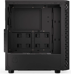 Skriňa podporuje kvapalinové chladenie do 240 mm hore a 240/360 mm vpredu, vzduchové chladiče CPU do 161 mm a grafické karty až do 325 mm. Vďaka magnetickým prachovým filtrom je údržba rýchla a čistá – stačí ich sňať a vyčistiť.