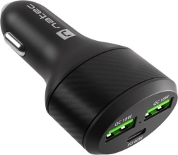 NATEC Coney je elegantná a odolná autonabíjačka do 12/24 V zásuvky, ktorá zvládne napájať telefón, tablet aj menší notebook zároveň. S celkovým výkonom 84 W a tromi portmi – USB‑C PD 3.0 (60 W) a 2× USB‑A QC 3.0 – získate spoľahlivé a rýchle nabíjanie počas každej jazdy.