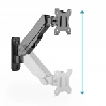 Maximalizujte priestor a zlepšite ergonómiu so spoľahlivým nástenným ramenom pre ploché aj zakrivené monitory. Integrovaná plynová pružina zabezpečuje plynulé a ľahké nastavovanie výšky až o 28 cm, takže monitor jednoducho prispôsobíte svojej výške aj polohe sedenia.