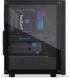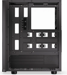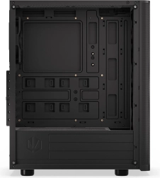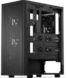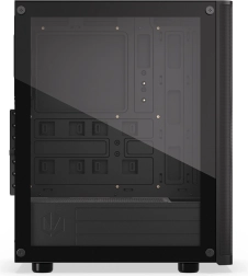 Bočnica z tvrdeného skla elegantne vystaví na obdiv komponenty a pevná konštrukcia skrinky ponúka priestor pre výkonné zostavy. Bez problémov nainštalujete ATX základnú dosku, až 3× 2,5" úložisko (alebo 1× 3,5" + 2× 2,5") a rozmerné chladiče či vodné okruhy s radiátormi 360 mm (predok) a 240 mm (horný panel).