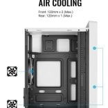 Táto vysoko výkonná mini tower skrinka je navrhnutá pre optimálnu ventiláciu a chladenie. Sieťový predný panel zaisťuje lepší prietok vzduchu. Vďaka sklenenému bočnému panelu ponúka štýlový vzhľad, zatiaľ čo praktický horný držiak uľahčuje prenos.