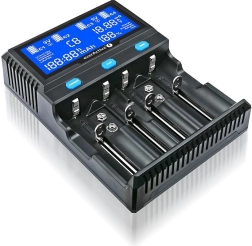 Univerzálna nabíjačka s mimoriadne širokou kompatibilitou pre články Li‑ion, Li‑HV, LiFePO4 a Ni‑MH. Podporuje veľkosti AA, AAA, C, D, 9 V aj Li‑ion články od 10440 až po 33600, vrátane 20700/21700 s ochranou. Vďaka maximálnej dĺžke sánok 76 mm pohodlne nabijete aj dlhšie akumulátory.