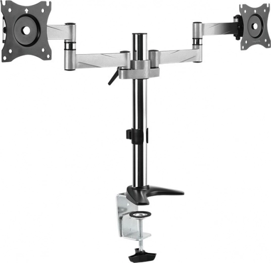 Ramená umožňujú jednoducho upraviť výšku, náklon aj natočenie, takže obrazovky rýchlo prispôsobíte svojej postave aj aktuálnej úlohe. Pevná stolová svorka zaistí stabilitu bez vŕtania do steny a zároveň šetrí miesto.