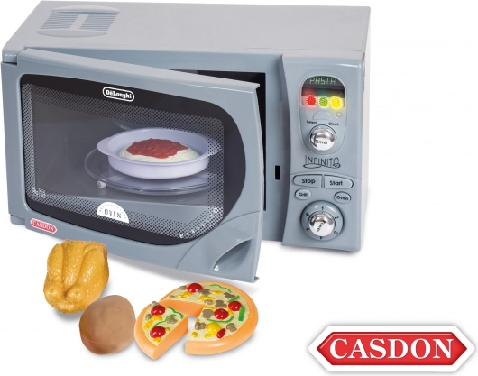 Ding! Vaša večera je horúca a pripravená na podávanie. Táto dokonalá mikrovlnná rúra DeLonghi vyzerá ako skutočná. Vyberte si program, zvoľte čas ohrevu a už len sledujte, ako sa tanier otáča.