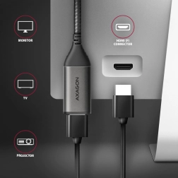 Ochrana a odolnosť sú zabezpečené vďaka kovovým koncovkám s niklovaným povrchom a pozlátenými spojmi, zatiaľ čo nylonový oplet zaisťuje dlhú životnosť. Jednosmerná konverzia z USB-C na HDMI vyžaduje podporu DisplayPort Alternate Mode pre správnu funkciu. Prenos signálu je zaistený bez potreby externého napájania. Užite si jednoduchosť a efektivitu v spojení zariadení cez USB-C.