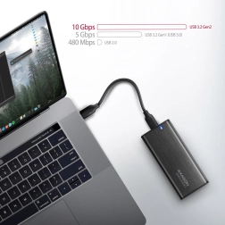 Skrinka AXAGON je vybavená moderným USB-C konektorom pre spoľahlivé pripojenie a je dodávaná s káblom USB-C -> USB-C a adaptérom USB-C -> USB-A. Vďaka tomu ju môžete ľahko pripojiť k notebooku, počítaču alebo dokonca mobilnému zariadeniu.