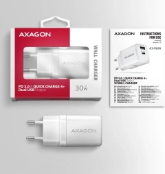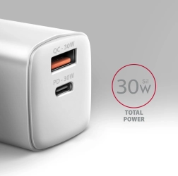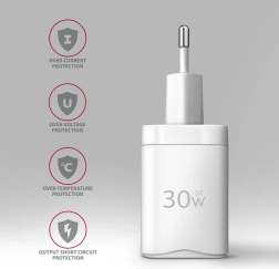 Rýchla a univerzálna nabíjačka pre telefóny, tablety aj menšie notebooky. Výstupy USB‑C PD 3.0 / QC 4+ a USB‑A QC 3.0 poskytujú až 30 W pre samostatné nabíjanie a inteligentné rozdelenie výkonu pri nabíjaní dvoch zariadení súčasne. Podpora PPS zaistí optimálne napätie a prúd pre moderné smartfóny.
