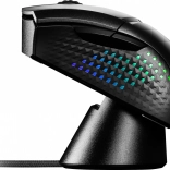 Myš podporuje tri spôsoby pripojenia – ultra rýchle bezdrôtové MSI SWIFTSPEED 2.4G, Bluetooth a káblový režim. Integrovaná batéria 550 mAh poskytne až 150 hodín prevádzky, pričom nabíjanie je možné dvoma spôsobmi: MSI SNAP CHARGING alebo nabíjacou dokovacou stanicou. Spínače OMRON zvládnu viac než 60 miliónov kliknutí a 100% PTFE klzné plochy zaistia takmer beztrenie.