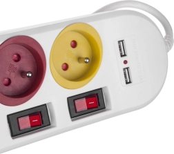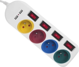 Táto napájacia lišta ponúka pohodlné riešenie pre moderné domácnosti, ktoré vyžadujú pripojenie viacerých zariadení. Vďaka štyrom farebne označeným zásuvkám a jednotlivým vypínačom pre každú zásuvku možno ľahko organizovať a kontrolovať prívod energie.