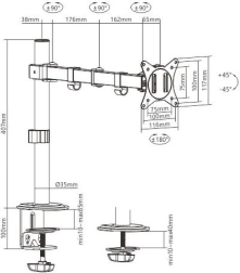 Monitorový držiak pre stôl umožňuje prispôsobenie polohy monitora podľa vašich potrieb. Je vyrobený z odolného kovu a podporuje monitory o veľkosti 17 až 32 palcov a hmotnosti do 9 kg.