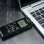 Vďaka Inteligentnému automatickému režimu diktafón sám upraví citlivosť podľa prostredia – zosilní vzdialené hlasy vo veľkých miestnostiach a stíši blízke zdroje v menších priestoroch. Dva dodané nabíjacie AAA Ni‑MH akumulátory umožnia až 68 hodín záznamu, s alkalickými AAA až 110 hodín. Záznamy aj dáta prenesiete ľahko cez integrovaný USB konektor, zariadenie možno použiť aj ako USB disk.