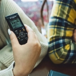 Ovládanie uľahčuje prehľadné menu, 1,6" displej, predný reproduktor a integrovaný stojan na používanie na stole. Chytré funkcie prehrávania – vyhľadávanie v kalendári, vyrovnanie hlasu, Noise Reduction, normalizácia, zmena rýchlosti 0,5×–2×, učenie sa so sťahovaním (Shadowing) či Voice Playback – šetria čas a zvyšujú zrozumiteľnosť nahrávok.