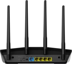 Router ASUS RT-AX57 poskytuje vysokovýkonný internet vďaka podpore štandardu 802.11ax a technológiám MU-MIMO a OFDMA, čo umožňuje efektívnu komunikáciu s viacerými zariadeniami súčasne. Štyri externé antény a 1,7GHz štvrojadrový procesor zabezpečujú stabilné a rýchle pripojenie, ideálne pre domácnosti s vysokými nárokmi na sieť.