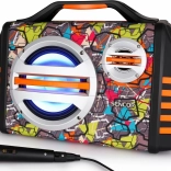 Karaoke mikrofón poteší malých spevákov – môžu si zaspievať svoje hity a vďaka funkcii nahrávania si výkon uchovať na pamiatku. Vstavaná batéria zaručí hodiny počúvania bez káblov a praktické madlo uľahčí prenášanie.