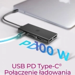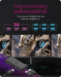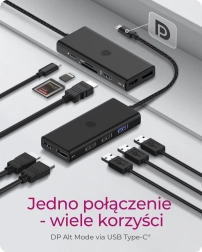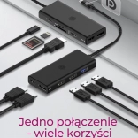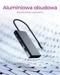 Dizajn a výkon: Kompaktné hliníkové telo ponúka štýlový vzhľad a umožňuje pohodlný prístup k dôležitým rozširujúcim portom, zároveň zabezpečuje efektívny odvod tepla. Rozšír si obzory: Jednoduché multitaskingové spracovanie vďaka možnosti pripojenia viacerých monitorov. Nabíjanie zariadení: Technológia nabíjania cez port Type-C umožňuje napájanie pripojeného notebooku s výkonom až 100 wattov. Parťák na cesty: Vďaka kompaktnému dizajnu sa malá dokovacia stanica zmestí do každého vrecka. Elegantný hliník zabezpečuje robustnosť na cestách.