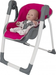 Chicco stolička pre bábiky 3v1 je multifunkčný doplnok, ktorý poslúži ako hojdačka, autosedačka i klasická stolička pre bábiky do veľkosti 43 cm.