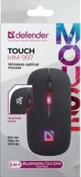 Štýlová bezdrôtová myš DEFENDER Touch spája tiché klikanie pre nerušenú prácu, spoľahlivé duálne pripojenie Bluetooth + 2,4 GHz, efektné RGB podsvietenie a presné nastavenie 800/1200/1600 DPI. Vďaka nabíjateľnému akumulátoru ušetríte za batérie a čierne prevedenie sa hodí do kancelárie aj domáceho prostredia.