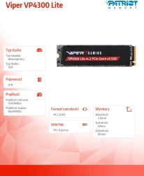 VIPER VP4300 Lite je moderné M.2 NVMe SSD pre náročných hráčov a tvorcov, ktorí vyžadujú špičkový výkon a stabilitu. Ponúka sekvenčné rýchlosti až 7400 MB/s pre čítanie a 6400 MB/s pre zápis, pričom pre PS5 dosahuje rýchlosť čítania približne 6100 MB/s, čo spĺňa požiadavky pre rozšírenie úložiska konzoly.
