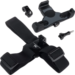 Súčasťou je adaptér GoPro → 1/4" na pripojenie väčšiny akčných kamier a fotoaparátov so štandardným statívovým závitom. Kovová montážna skrutka a odolné plastové komponenty zabezpečujú pevnosť a dlhú životnosť. Držiak telefónu stabilizuje obraz, takže môžete pořizovať ostré videá aj v náročných podmienkach.