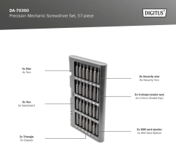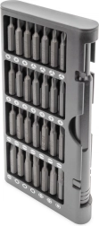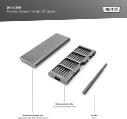 Univerzálna sada 57 dielov na jemné opravy elektroniky a presnú mechaniku. Obsahuje široký výber bitov z nástrojovej ocele S2 a Cr-V, uložených v kompaktnom hliníkovom puzdre na jednoduché prenášanie a rýchly prístup. Ideálne pre smartfóny, notebooky, fotoaparáty, hodinky aj modelárstvo.