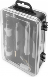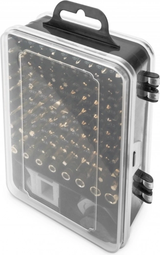 Odolné, priehľadné puzdro s istým zatváraním udrží všetky diely bezpečne na mieste a umožní rýchle nájdenie správneho nástroja doma aj na cestách.