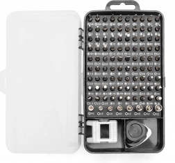 S touto profesionálnou sadou máte vždy po ruke správny nástroj. Rozsiahly výber presných bitov z kvalitnej ocele S2 a Cr‑V zaistí dlhú životnosť, presnosť a spoľahlivosť pri každodenných opravách elektroniky aj jemnej mechaniky. Kompaktné, obojstranné puzdro udrží všetko prehľadne usporiadané a ľahko prístupné.
