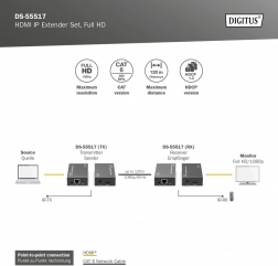 V režime bod–bod prenesie HDMI signál po kábli Cat 6 na vzdialenosť až 120 metrov bez straty kvality obrazu a zvuku.