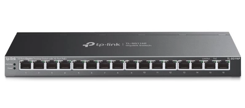 Kompaktný desktopový switch so 16 gigabitovými portami RJ45 a 16× PoE+ na napájanie aj dáta po jednom kábli. Ponúka PoE rozpočet 120 W, dosah až 250 m v režime Extend, inteligentné funkcie Priority, Isolation a PoE Auto Recovery pre spoľahlivú prevádzku. Plug and play bez konfigurácie.