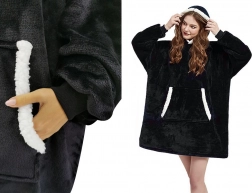 Univerzálna mikina deka s kapucňou je vhodná pre dospelých i deti. Je perfektná na chladné večery strávené pri televízii, krbe alebo na terase. Veľká praktická kapsa umožňuje ľahké ukladanie drobností alebo ohrievanie rúk.