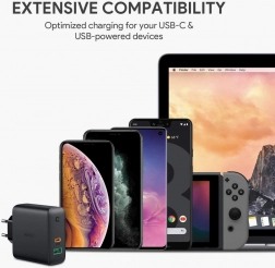 Nabíjajte rýchlo a efektívne svoje zariadenia s nabíjačkou AUKEY PA-D3. Dva porty – USB-C Power Delivery a USB-A – pokryjú všetko od mobilov a slúchadiel až po výkonnejšie zariadenia, vrátane notebookov a monitorov napájaných cez USB-C. Technológia Dynamic Detect inteligentne prideľuje výkon: pri jednom pripojenom zariadení až 60 W, pri dvoch zariadeniach optimalizuje rozdelenie (napr. až 45 W pre primárny port), a zabezpečuje tak rýchle a bezpečné nabíjanie.