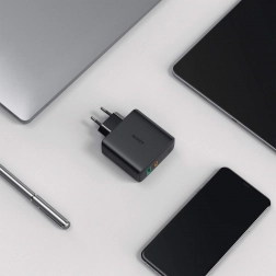 Kompaktné telo so skladacou sieťovou vidlicou je ideálne na cesty aj do kancelárie. Univerzálna kompatibilita s protokolmi rýchleho nabíjania zaistí pohodlie – jedna nabíjačka pre viac zariadení, menej káblov a zásuviek.