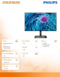 Objavte úžasnú obrazovú kvalitu s 27-palcovým monitorom Philips, ktorý je vybavený technológiou IPS pre širšie uhly pohľadu a presnejšie farby.