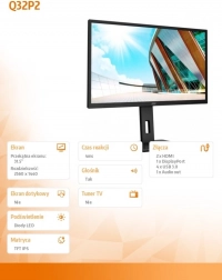 Monitor Q32P2 je navrhnutý tak, aby poskytoval vynikajúcu kvalitu obrazu a flexibilitu, ktorú očakávate od moderného zariadenia.