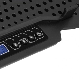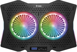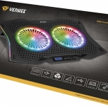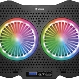 Táto univerzálna chladiaca podložka je navrhnutá pre efektívny odvod tepla a tichú prevádzku. Pevná kovová perforovaná mriežka zlepšuje prúdenie vzduchu a chráni zariadenie, zatiaľ čo RGB osvetlenie dodá vášmu stolu štýl. Integrovaný LCD panel umožňuje rýchle nastavenie rýchlosti ventilátorov aj svetelných efektov.