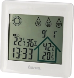 - Zobrazuje vlhkosť vzduchu vo vnútri aj vonku.