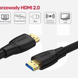 Štandard HDMI 2.0 ponúka šírku pásma až 18 Gbps, takže bez problémov zvládne rozlíšenie 4K pri 60 Hz, HDR, ARC (spätný audio kanál), EDID, CEC a 3D. Kábel je ideálny na prepojenie TV, projektorov, AV receiverov, konzol a multimediálnych prehrávačov na dlhšie vzdialenosti.