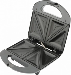 Praktická konštrukcia ponúka kapacitu až 4 trojuholníkových sendvičov v jednom cykle, uzamykateľnú západku pre bezpečné opekanie a svetelné kontrolky pre prehľad o prevádzke. Tepelne izolované telo sa počas práce neprehrieva, čo zvyšuje bezpečnosť aj komfort používania. Elegantné čierne prevedenie s leskom a oceľovým panelom skvele zapadne do modernej kuchyne.