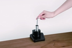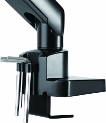 Držiak je možné upevniť na stôl pomocou svorkovej základne, čo šetrí miesto. Alternatívne ho možno pripojiť priamo do priechodky stola.