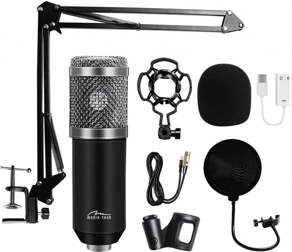 Obsahuje všetky potrebné nástroje vrátane statívu, pop-filtra a antivibračného koša, ktoré zabezpečia profesionálnu kvalitu zvuku.