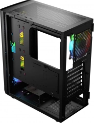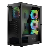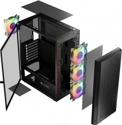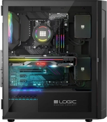 Skriňa LOGIC Aramis ARGB Midi je navrhnutá pre hráčov, ktorí hľadajú moderné a funkčné riešenia. Vynikajúce prúdenie vzduchu je zabezpečené tromi 120mm ventilátormi vpredu a jedným vzadu, ktoré efektívne chladia komponenty. Skriňa má otvárateľné dvere z tvrdeného skla, čo uľahčuje údržbu a čistotu. Pod čiernou estetikou skrine sa skrýva priestor pre komponenty až do dĺžky grafickej karty 340 mm a výšky chladiča procesora 155 mm.