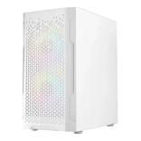 LOGIC Aramis ARGB Mini v elegantnej bielej farbe spája moderný vzhľad a premyslené prúdenie vzduchu. Predný panel s jemným mesh vzorom prepúšťa dnu dostatok vzduchu, zatiaľ čo dva predinštalované 120 mm ARGB ventilátory udržia komponenty v chlade a dodajú zostave štýl. Bočný panel z tvrdeného skla nechá vyniknúť vašej grafickej karte aj osvetleným prvkom, pričom podsvietenie jednoducho prepnete tlačidlom RESET na hornom paneli.