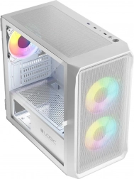 LOGIC Portos ARGB Mini je štýlová a premyslená počítačová skriňa pre hráčov, ktorá šetrí miesto na stole a zároveň ponúkne špičkový prietok vzduchu aj jednoduchú údržbu. Bočnica z tvrdeného skla na pántoch funguje ako dvierka – jednoducho ju otvoríte a vyčistíte interiér stlačeným vzduchom. Dva predné a jeden zadný ventilátor ARGB 120 mm účinne ochladzujú komponenty, zatiaľ čo perforovaný predný aj horný panel zabezpečuje skvelú ventiláciu.