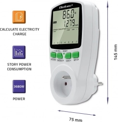 Majte jasno v tom, ktoré zariadenia sú najväčšími „žrútmi“ energie. Qoltec PM0627 poskytuje presné meranie bez odhadov, takže môžete spoľahlivo vypočítať náklady a vyhodnotiť účinnosť úspor. Vďaka podsvietenému LCD ľahko skontrolujete aktuálny výkon, súčet kWh, čas aj cenu podľa zadanej sadzby.