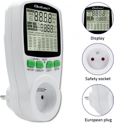 Inteligentný zásuvkový merač spotreby energie Qoltec PM0627 vám pomôže znižiť účty za elektrinu vďaka presnému monitorovaniu. Ponúka veľký podsvietený LCD, 7 režimov zobrazenia, výpočet nákladov, históriu spotreby a ochranu proti preťaženiu. Jednoducho zapojíte a ihneď meriate výkon, energiu aj cenu.