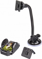 Univerzálny držiak na telefón do auta umožňuje bezpečné upevnenie smartfónu na čelné sklo alebo mriežku ventilácie pomocou flexibilného ramena s prísavkou pre jednoduché nastavenie polohy.