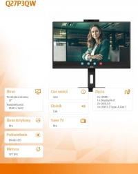 Monitor AOC Q27P3QW je vybavený integrovanou kamerou na hornej strane displeja, čo z neho robí perfektný nástroj pre videokonferencie a online stretnutia.