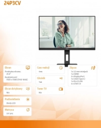 Objavte výkon a flexibilitu s monitorom AOC 24P3CV. Tento monitor s moderným dizajnom disponuje 23,8" IPS panelom, ktorý zabezpečuje živé a ostré zobrazenie. Početné možnosti pripojenia, vrátane HDMI, DP a USB-C, zabezpečujú kompatibilitu so všetkými vašimi zariadeniami.