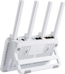 ASUS ExpertWiFi EBR63 poskytuje vysokorýchlostné pripojenie vďaka štyrom externým anténam, ktoré zaisťujú rýchlosti až 2402 Mbps na 5GHz pásme a 574 Mbps na 2,4GHz pásme. Tento router podporuje až 100 aktívnych zariadení, čím zaisťuje plynulú a stabilnú konektivitu pre celú firmu.