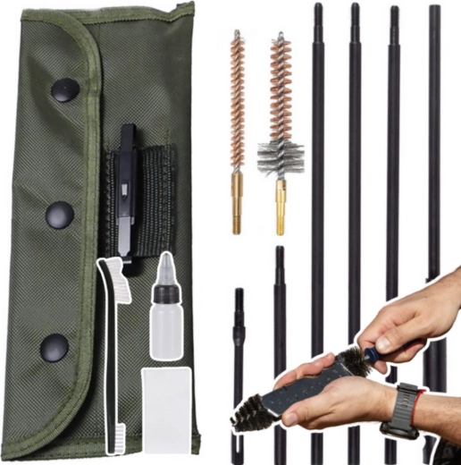 Skladá sa zo 6-dielnej, skrutkovanej tyče s maximálnou dĺžkou 83 cm, vyrobenej z čiernenej ocele pre dlhú životnosť a odolnosť voči opotrebeniu. Súčasťou sady sú mosadzné kefky na čistenie hlavňovej trubice a nábojovej komory, ktoré účinne odstraňujú znečistenie bez poškodenia povrchu oceľových súčiastok. Sada obsahuje aj plastovú kefku s rôznou hustotou štetín, ktorá je ideálna na čistenie ťažko prístupných miest, ako sú napríklad záverové komory. Otočná rukoväť v tvare T uľahčuje manévrovanie s vytieračom a zabezpečuje presné čistenie vnútra hlavne. Súčasťou sady je aj hrot na balenie a stieranie a ručná nylonová kefka s dvoma hrotmi, ktorá je ideálna na údržbu citlivých častí zbrane.