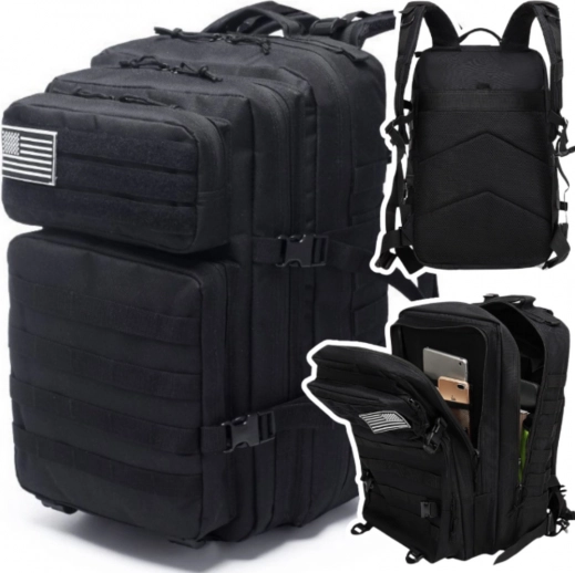Univerzálny taktický batoh 40–60 l v čiernej farbe na turistiku, výšľapy aj každodenné nosenie. Ponúka odolný polyester, ergonomický nosný systém, ventiláciu chrbta a modulárny MOLLE systém na rozšírenie kapacity. Vďaka kompresným popruhom, vodoodolnej konštrukcii a inteligentnému vnútornému členeniu bezpečne prenesiete všetko potrebné.